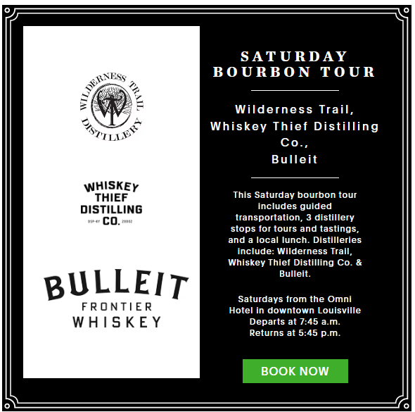 This package is a fantastic adult get-away that includes 4 tickets on the famous Kentucky Bourbon Trail to visit 3 Bourbon Distilleries, Tour Transportation, and Accommodations at the Luxurious Omni Louisville Hotel where you have two rooms for two nights from Friday August 11th and Saturday August 12th. Your Bourbon Trail Experience is Saturday August 12th with a full day of tasting and sipping the smooth and deep undertones of Kentucky Bourbon. No worries about driving because you are dropped at the doorstep of the Omni Hotel where you can savory the days experience.